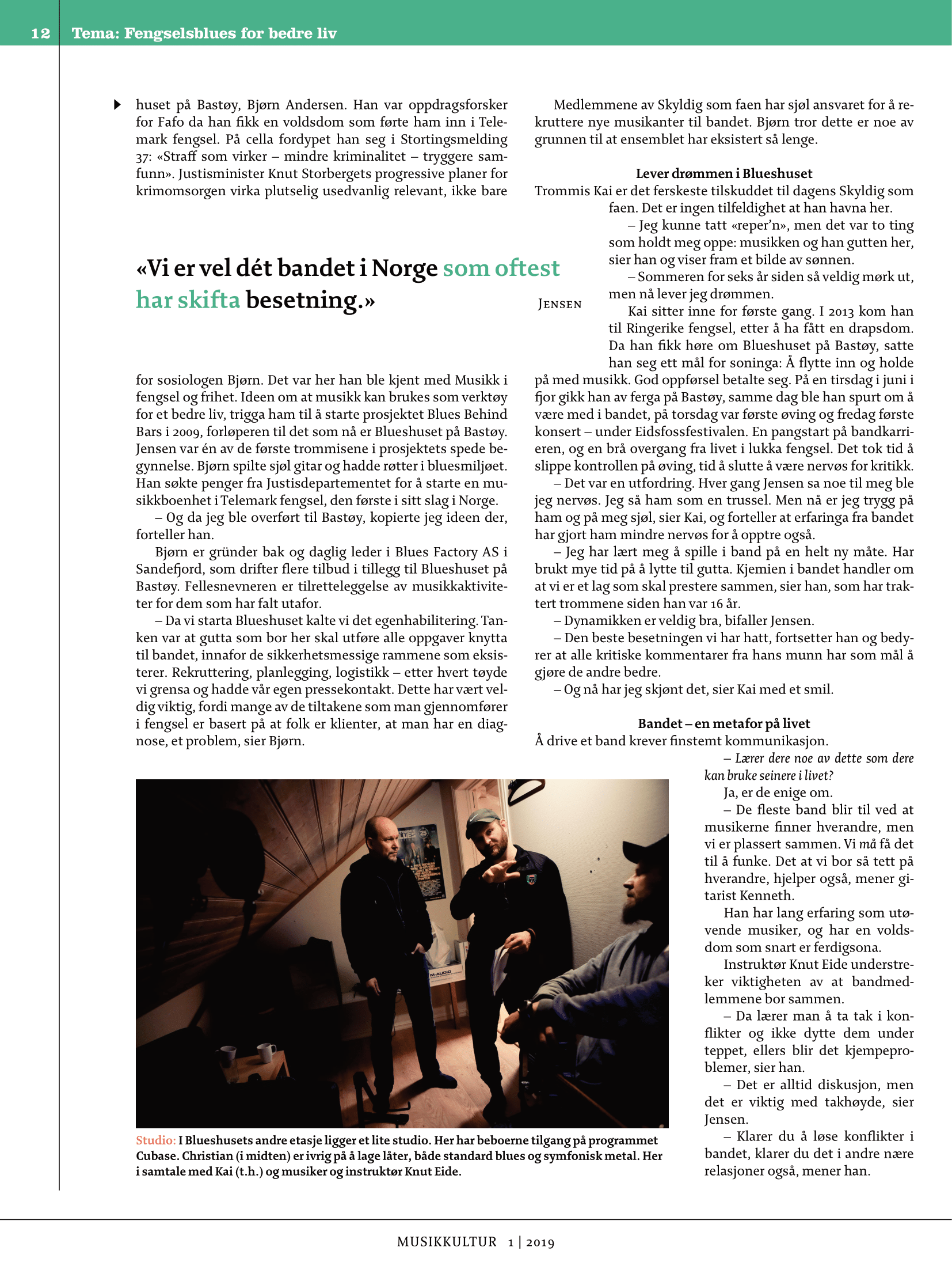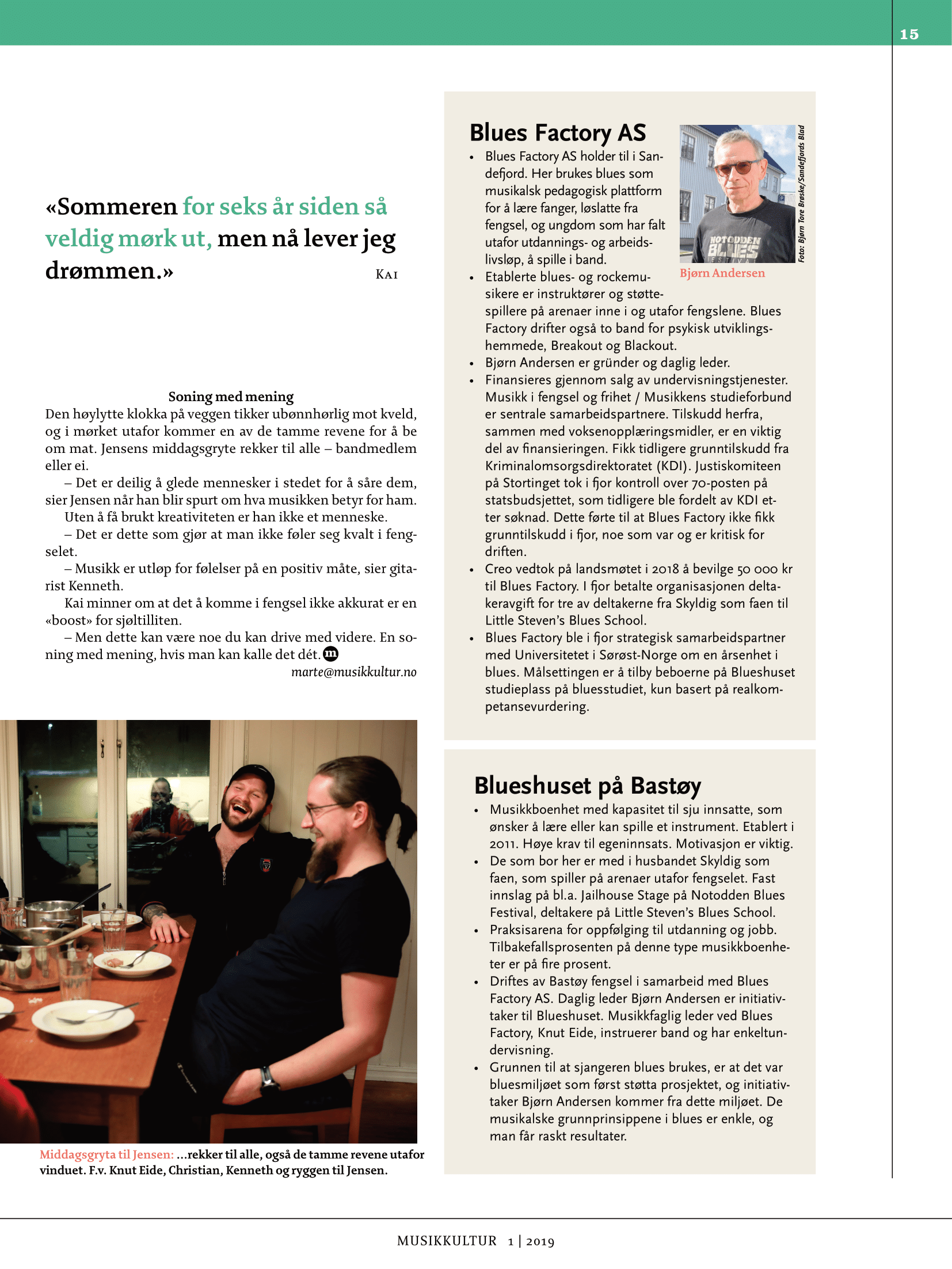 Repotasje om Blueshuset i Musikkultur nr 1 – 2019